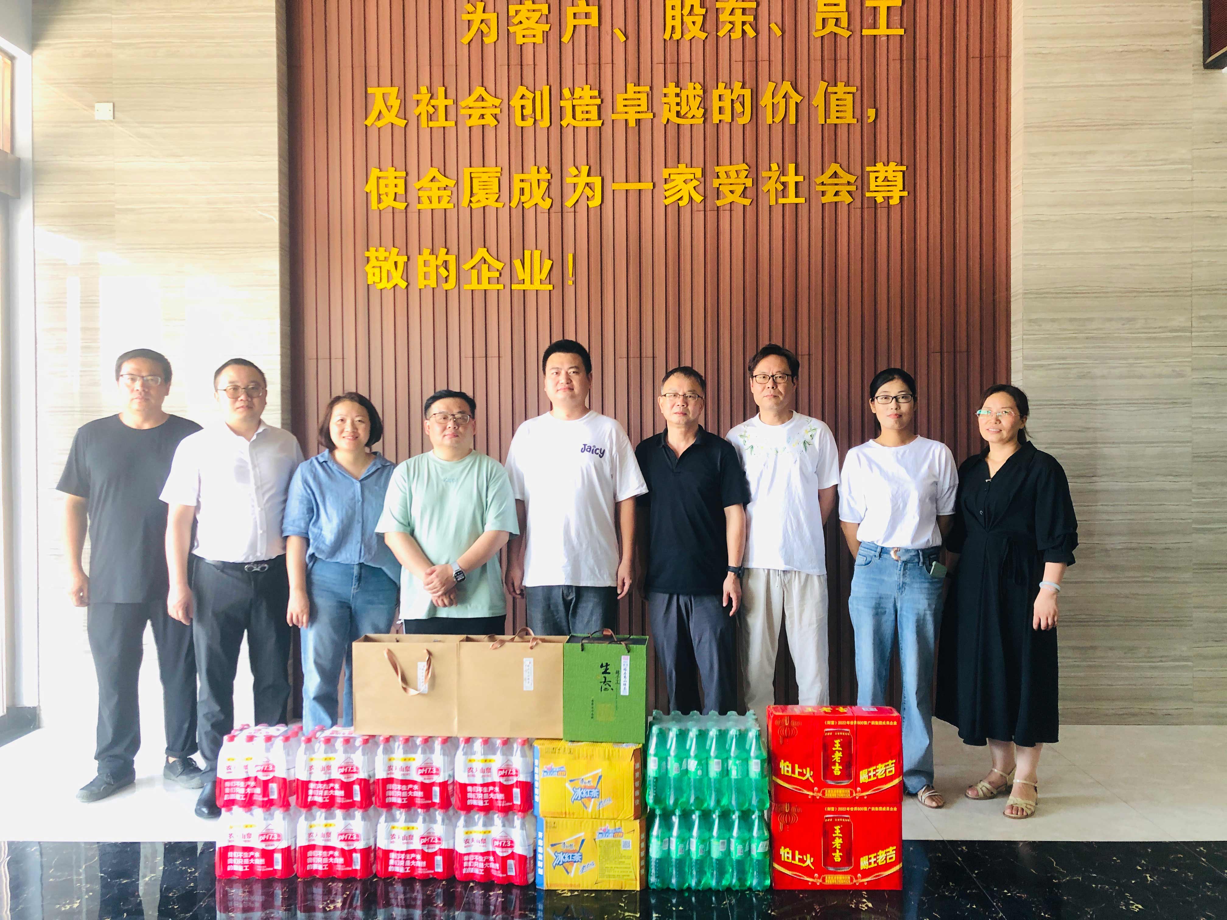 為切實(shí)保障一線員工的身體健康,將集團(tuán)“以人為本”的理念落到實(shí)處,持續(xù)推進(jìn)“幸福金廈”建設(shè),提升員工的凝聚力和向心力,7月10日,金廈集團(tuán)總裁傅融率集團(tuán)管理層走訪慰問(wèn)高溫下堅(jiān)守崗位、辛勤勞動(dòng)的一線員工,為他們送去清涼和關(guān)懷。