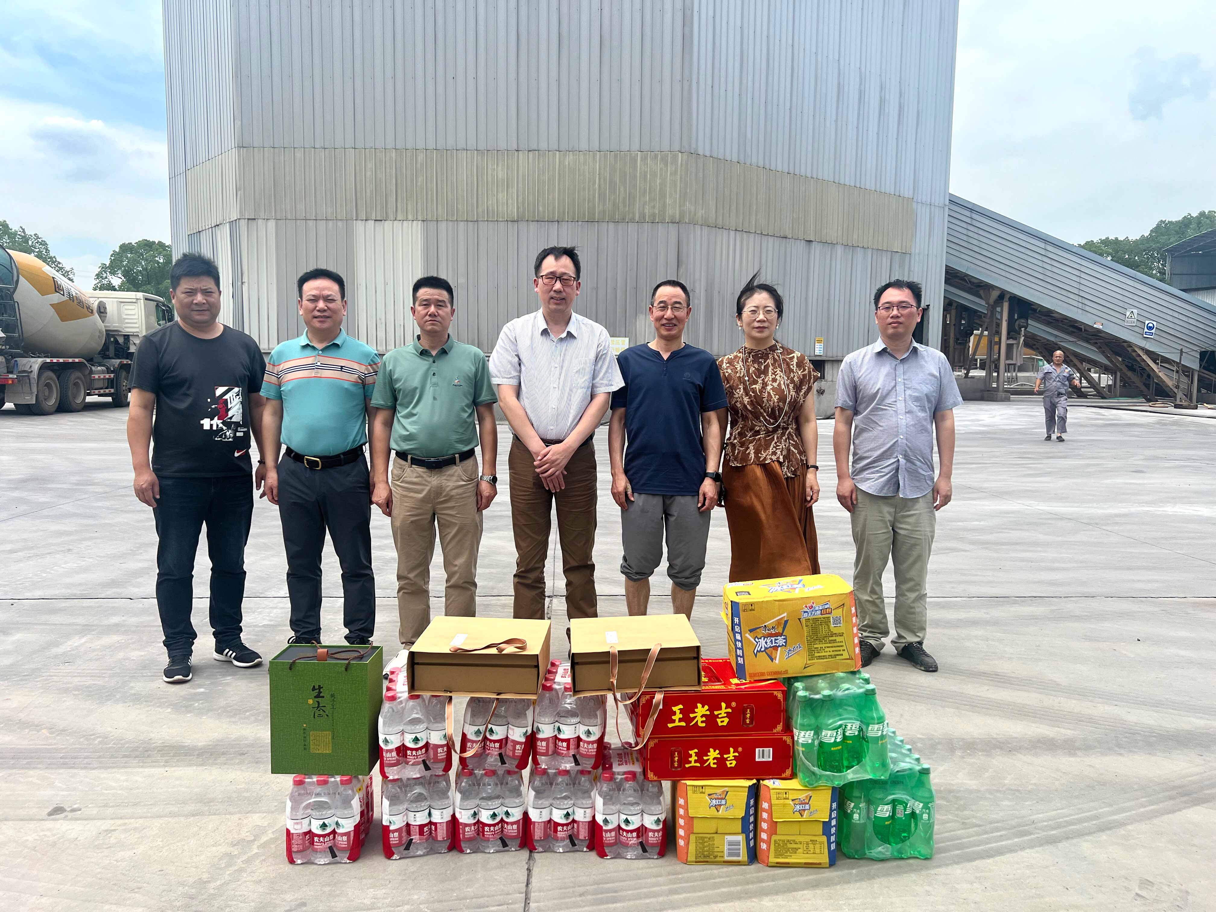 集團(tuán)高管層分三路慰問(wèn)近20家子公司。走訪中,集團(tuán)領(lǐng)導(dǎo)深入子公司生產(chǎn)場(chǎng)地,了解各家公司的生產(chǎn)任務(wù)安排和員工的作息排班情況?!按蠹倚量嗔耍邷靥鞖庖欢ㄒ龊梅朗罱禍毓ぷ?!”在高溫工作現(xiàn)場(chǎng),傅融總裁代表集團(tuán)向奮戰(zhàn)在一線的員工致以親切的問(wèn)候,并為他們送上冰紅茶、王老吉、礦泉水等清涼物資,對(duì)他們?cè)诟邷叵聢?jiān)守崗位表示感謝。傅總叮囑大家工作中要增強(qiáng)安全防護(hù)意識(shí),落實(shí)好防暑降溫措施,確保安全生產(chǎn),平安度夏。